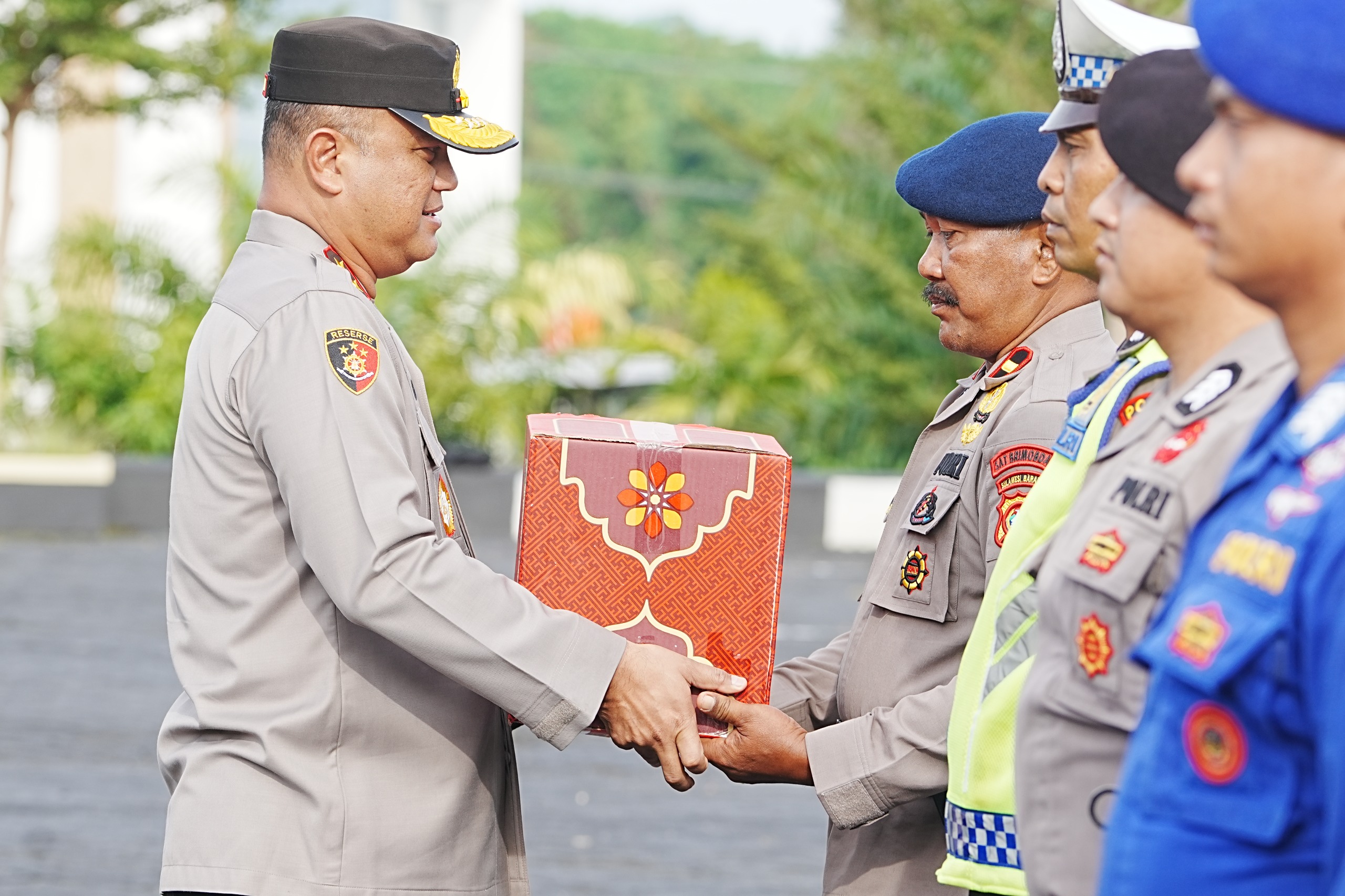 Dalam momen apel pagi, Kapolda secara simbolis menyerahkan langsung kepada perwakilan masing-masing kelompok penerima, Kamis (5/3/26) di Lapangan Tribrata Mapolda Sulbar.