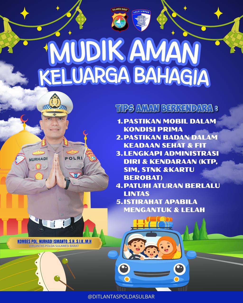 SINARSORE.ID, MAMUJU – Dalam menghadapi musim mudik yang akan datang bersamaan dengan bulan suci Ramadan, Direktorat Lalu Lintas (Ditlantas) Polda Sulawesi Barat melalui akun Instagram resminya menyebarkan konten edukatif berupa tips-tips penting untuk memastikan perjalanan mudik berjalan aman dan menyenangkan bagi seluruh keluarga.