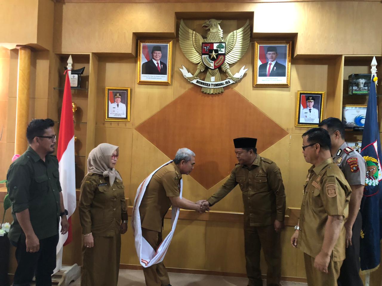 Dalam suasana penuh kekeluargaan, penyambutan tersebut ditandai dengan pemberian cendera mata berupa sarung khas Mamasa yang dikalungkan langsung oleh Bupati Mamasa, didampingi Wakil Bupati Mamasa, sebagai simbol penghormatan dan kearifan lokal daerah.