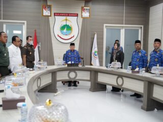 Terlihat sejumlah Kepala Organisasi Perangkat Daerah (OPD) lingkup Pemerintah Provinsi (Pemprov) Sulbar turut mendampingi Gubernur Suhardi Duka dalam menerima tamu yang datang.