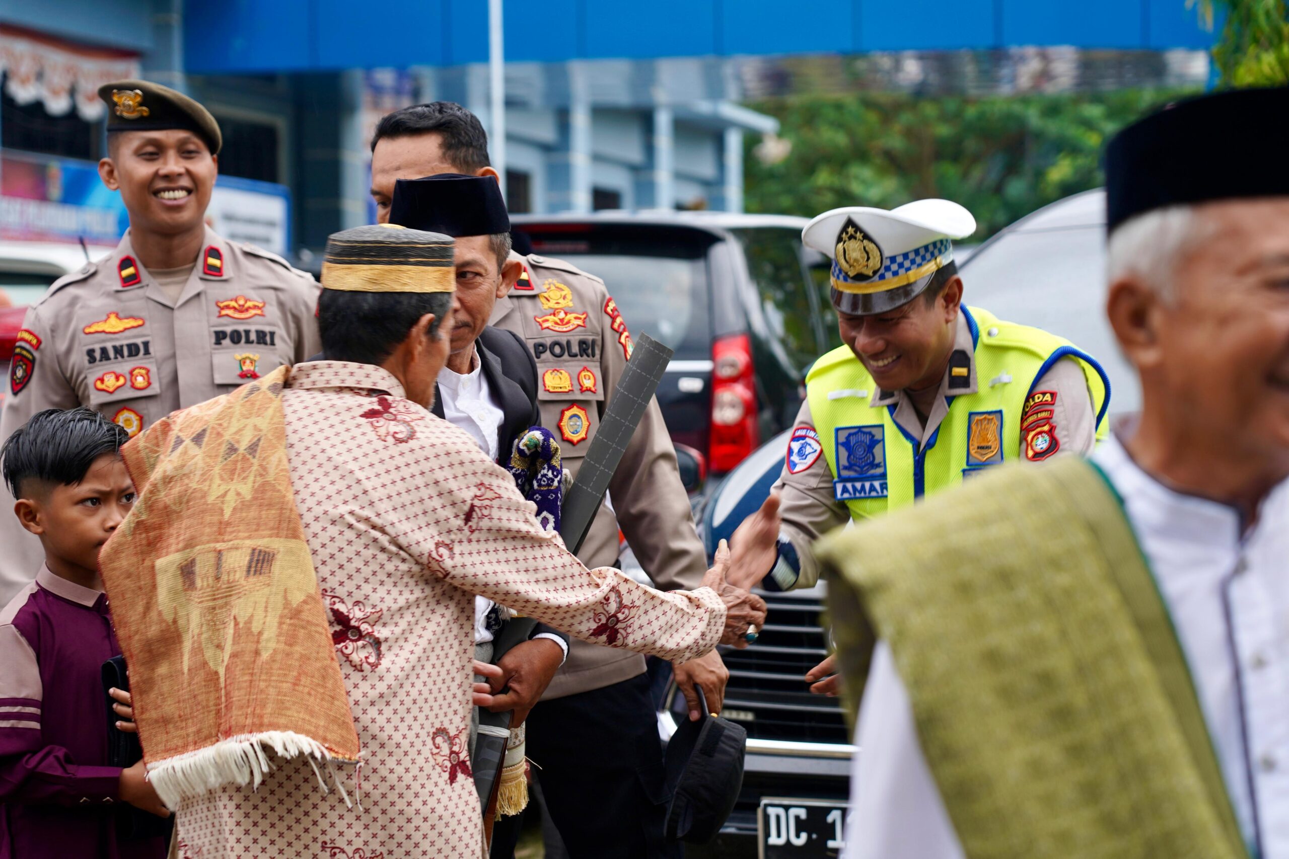 Momen hari kemenangan ini semakin hangat dengan sikap saling menghargai antara masyarakat dan aparatur keamanan.