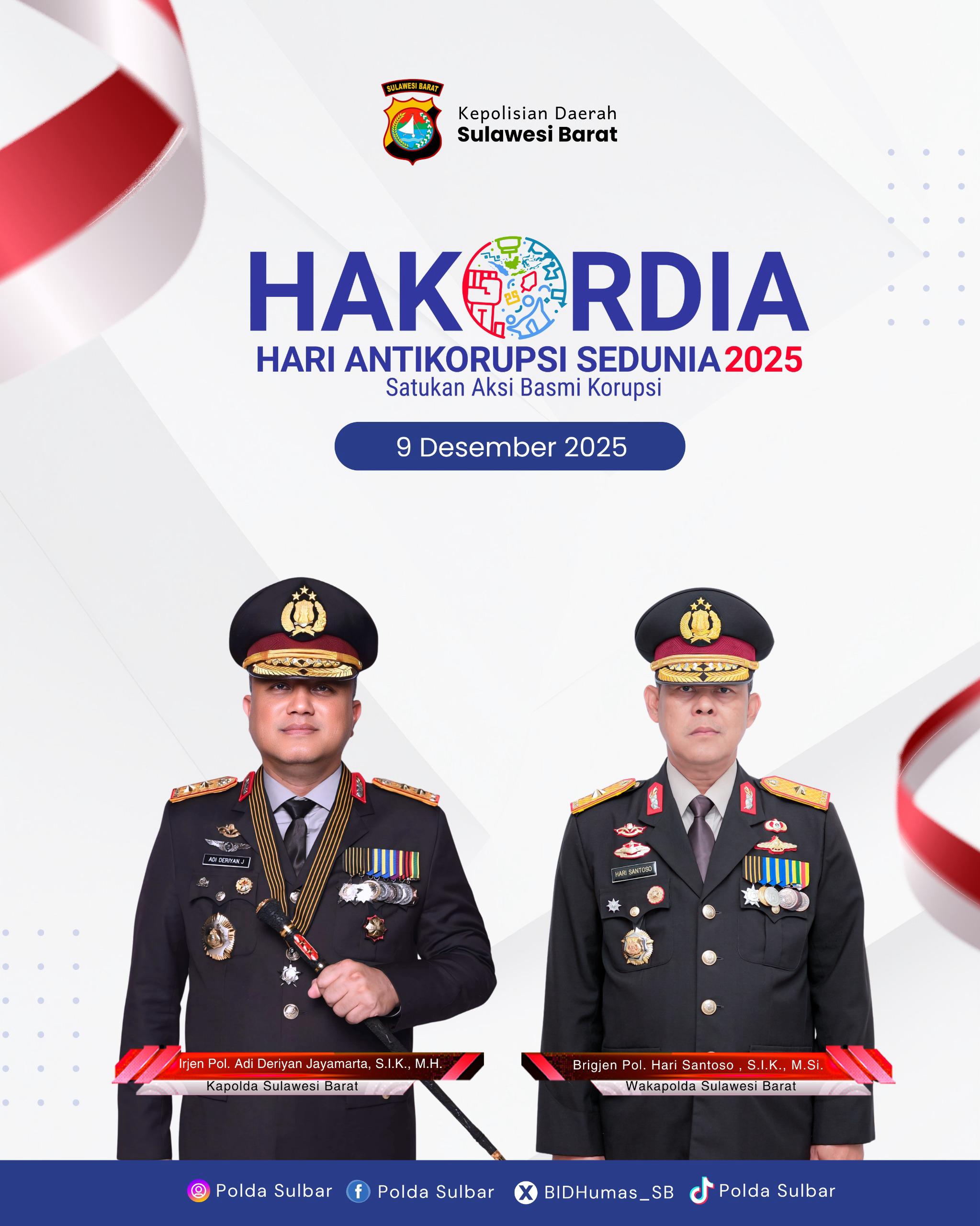 Komitmen tersebut juga diwujudkan melalui penayangan ucapan Harkodia di berbagai platform media sosial resmi Polda Sulbar, sebagai langkah nyata dalam mewujudkan daerah yang maju, sejahtera dan bebas dari korupsi.