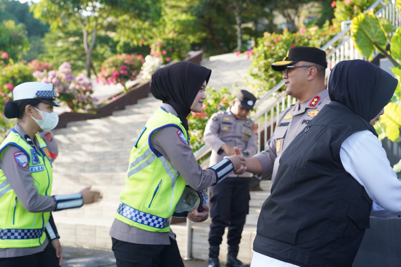 Usai pelaksanaan apel pagi rutin di Markas Polda Sulbar, Senin (23/3/26) Kapolda Sulbar Irjen Pol Adi Deriyan Jayamarta bersama seluruh pejabat utama dan personelnya melakukan tradisi saling bersalam-salaman untuk memohon maaf satu sama lain dengan harapan menggugurkan segala kesalahan yang pernah terjadi baik yang disengaja maupun tidak disengaja selama menjalankan tugas.