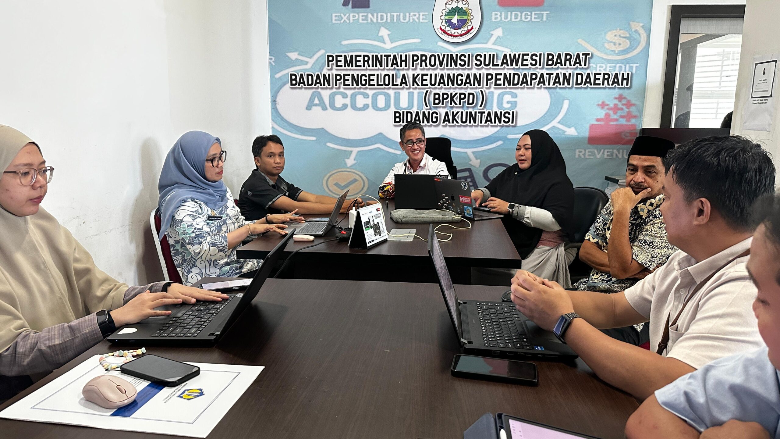 Dalam pertemuan, Kepala BPKAD Provinsi Sulawesi Barat, didampingi Plt. Kepala Bidang Perbendaharaan dan Akuntansi Syaharuddin beserta para Kepala Subbidang serta Admin SIPD wilayah Sulawesi Barat, Azis.